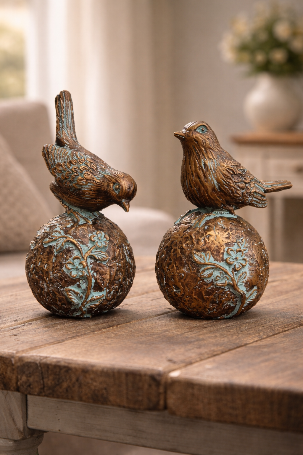 The Bird - Orb set of two adds elegance to any space. Crafted from high quality resin, these art pieces are designed to create a feeling of tranquility. The set stands 8.5"H and 10.5"H, providing an eye-catching contrast. Whether placed in the bedroom or living area, this set will bring a touch of sophistication and luxury to your home.