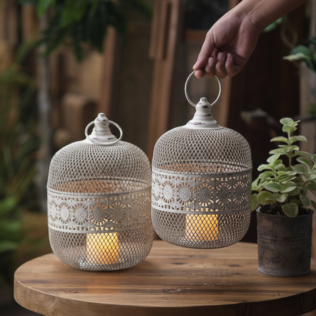 Infuse your space with vintage charm using the Kismet Cloche Set. This duo features intricately patterned metal cloches with a rustic, weathered finish and looped tops for easy placement. The small cloche measures 6.25" x 6.25" x 9.5", the large cloche measures 7.75" X 7.75" X 11.75" making it perfect for candles, small plants, or seasonal accents. The openwork design softly diffuses candlelight, creating a warm, ambient glow. Display them together for a layered look or style individually to add a touch of old-world elegance anywhere in your home.