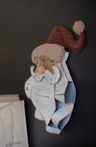 Painted Metal and Boucle Santa Head Wall Decor