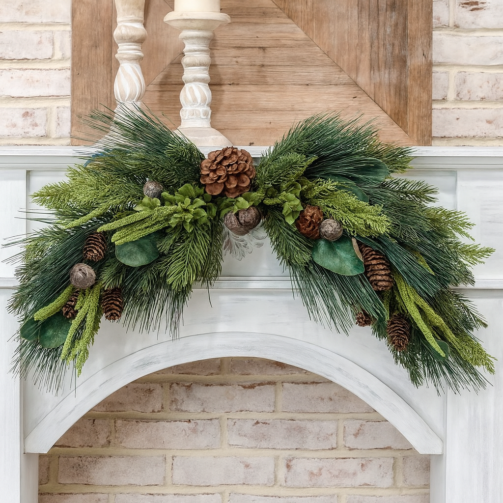 Bring the beauty of the season indoors with this elegant greenery swag—ideal for welcoming guests and creating a festive atmosphere all winter long.
